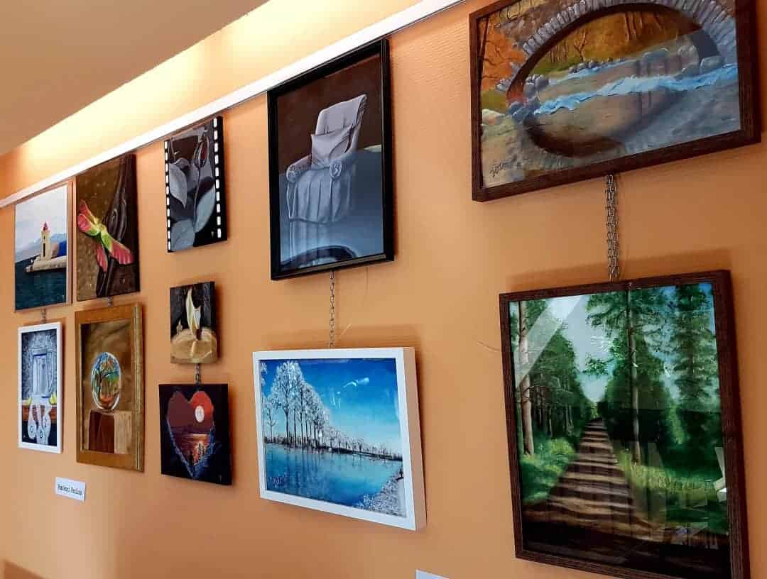 Mint a galéria képeiben is láthatod majd, egy pár festményem felkerült egy külön falra (Zöld almák és társai), így azokat is meg tudod tekinteni, ha ellátogatsz a könyvtár nyitvatartási idejében.