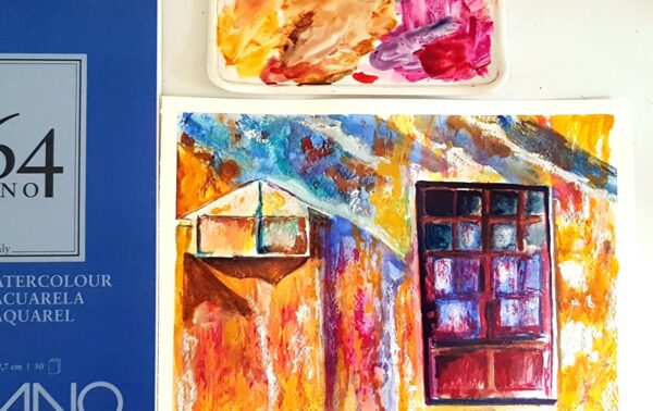 A tájképek elengedhetetlen papírja a cold press lap. Ezen a finom érdes felületű lapon, mint a mellékelt galéria képen is látszik, remek felületeket lehet kialakítani, amivel már egy ecsetvonással is mozgalmassá tesszük a képet.